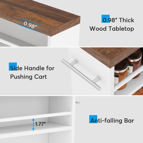 Slim storage cart with wheels - White
